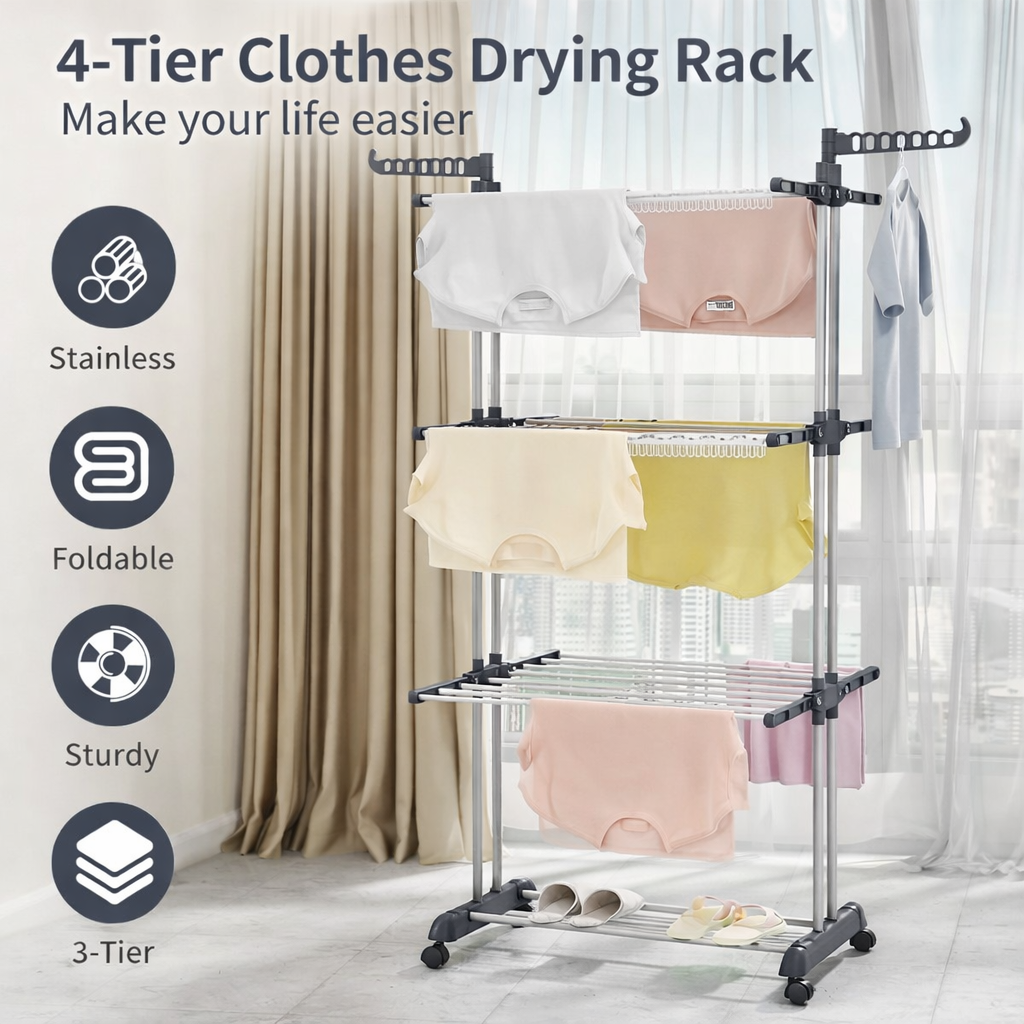 ✔️Space-Saving Design: Our 4-tier clothes airer is foldable, lightweight (3kg net weight), and easy to store. Perfect for small spaces, including flats, homes, or dormitories.